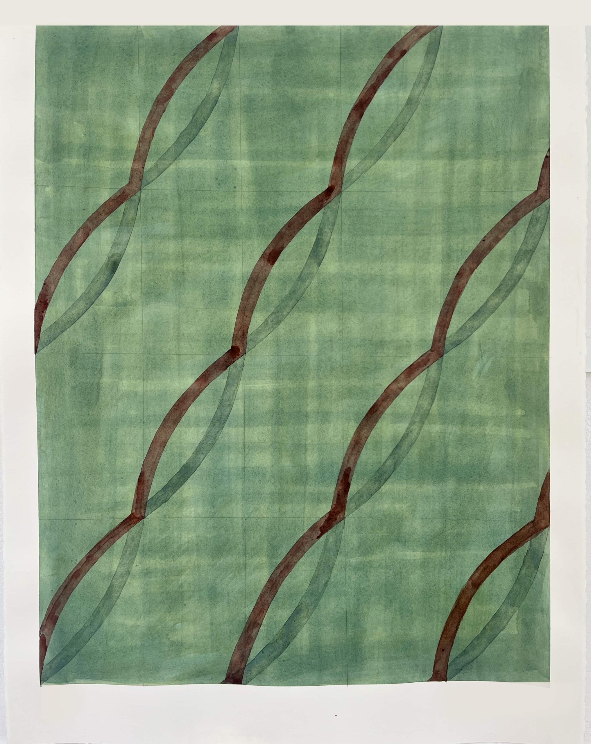 Diagonal Curves (Green & maroon) watercolour ; 75 x 56 cms